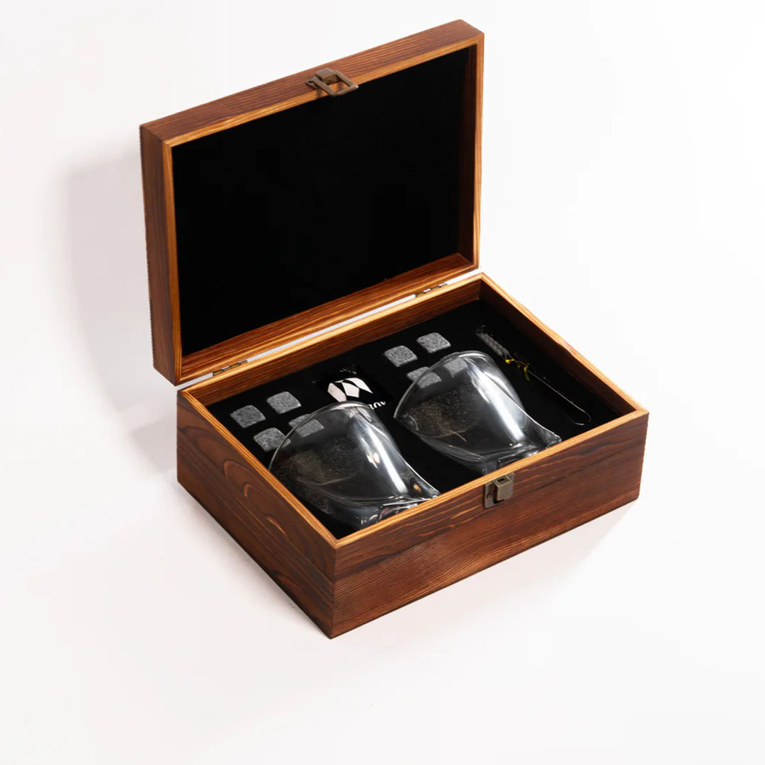 Inclus: • 2 pahare reprezintă forma corectă pentru băut. • Clește - pentru a nu se uda mâinile. • 8 pietre de răcire – pentru menținerea temperaturii pe termen lung. • Geantă pentru depozitareapietrelor - practică și îngrijită.