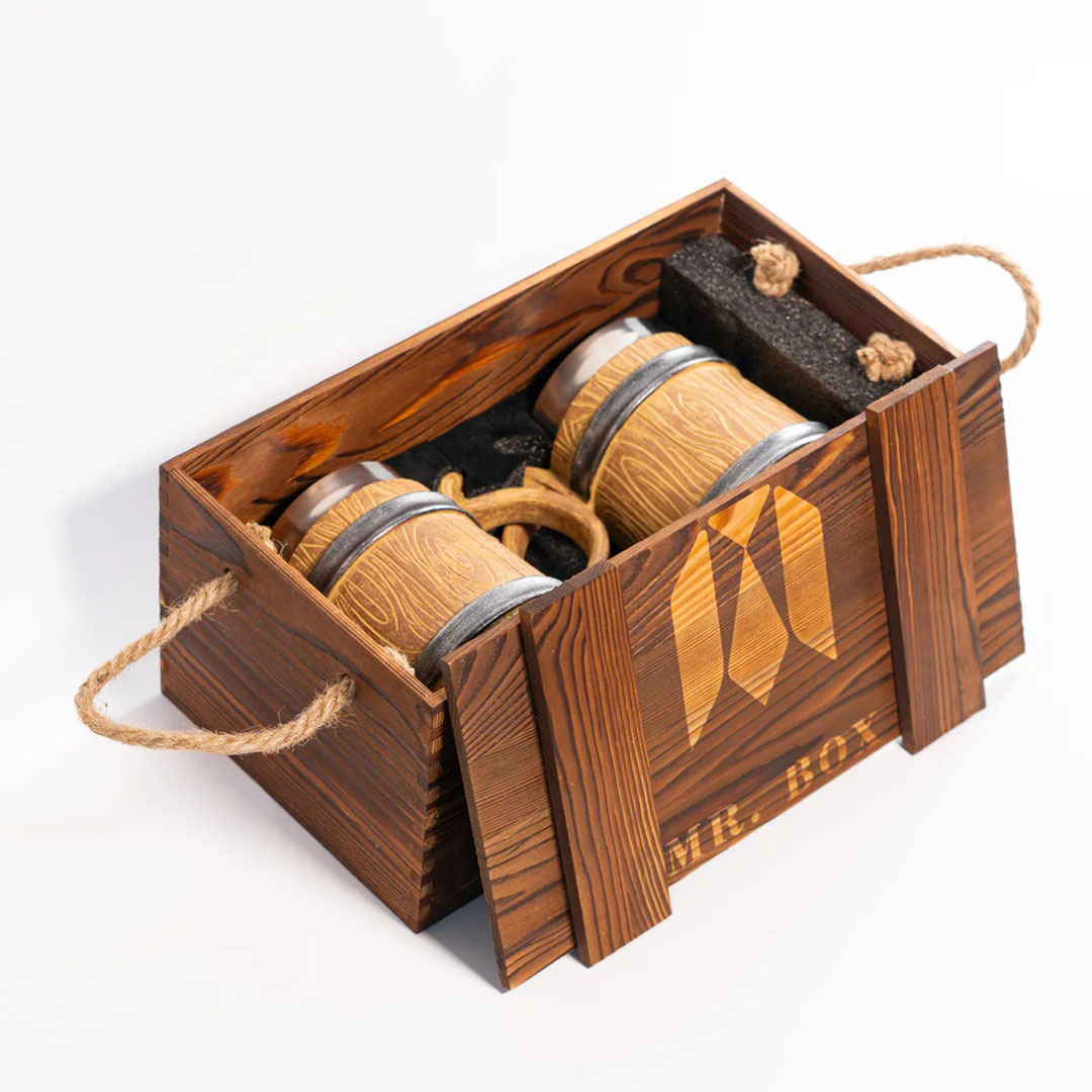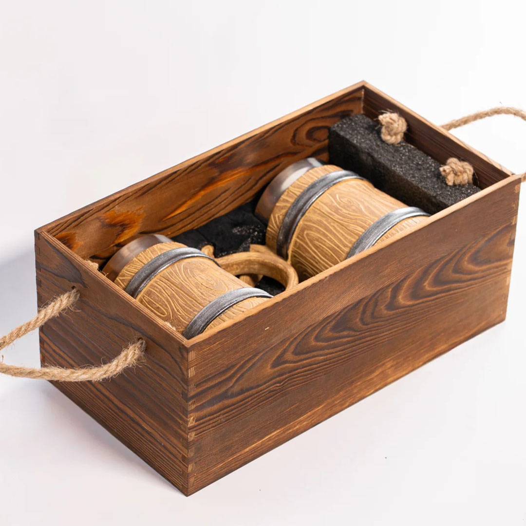 • Două halbe cu interior de oțel alimentar - nu afectează gustul, se păstrează bine la rece, ușor de curățat.